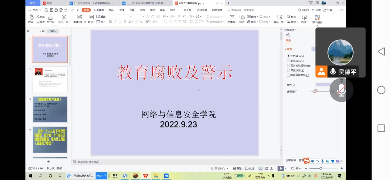 为进一步加强党风廉政建设,提高党员干部抵御廉政风险的能力,牢固树立廉洁自律意识,落实公司关于开展“警示教育周”活动的通知,9月23日下午,公司党总支开展了廉政警示教育专题党课,由党总支书记吴德平主讲。