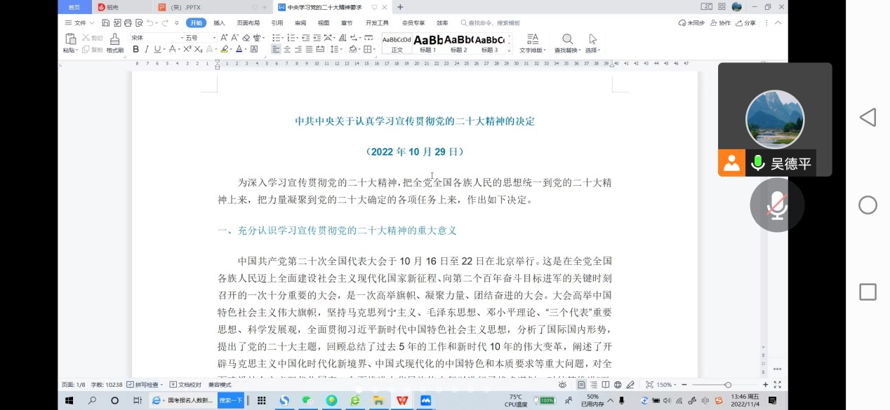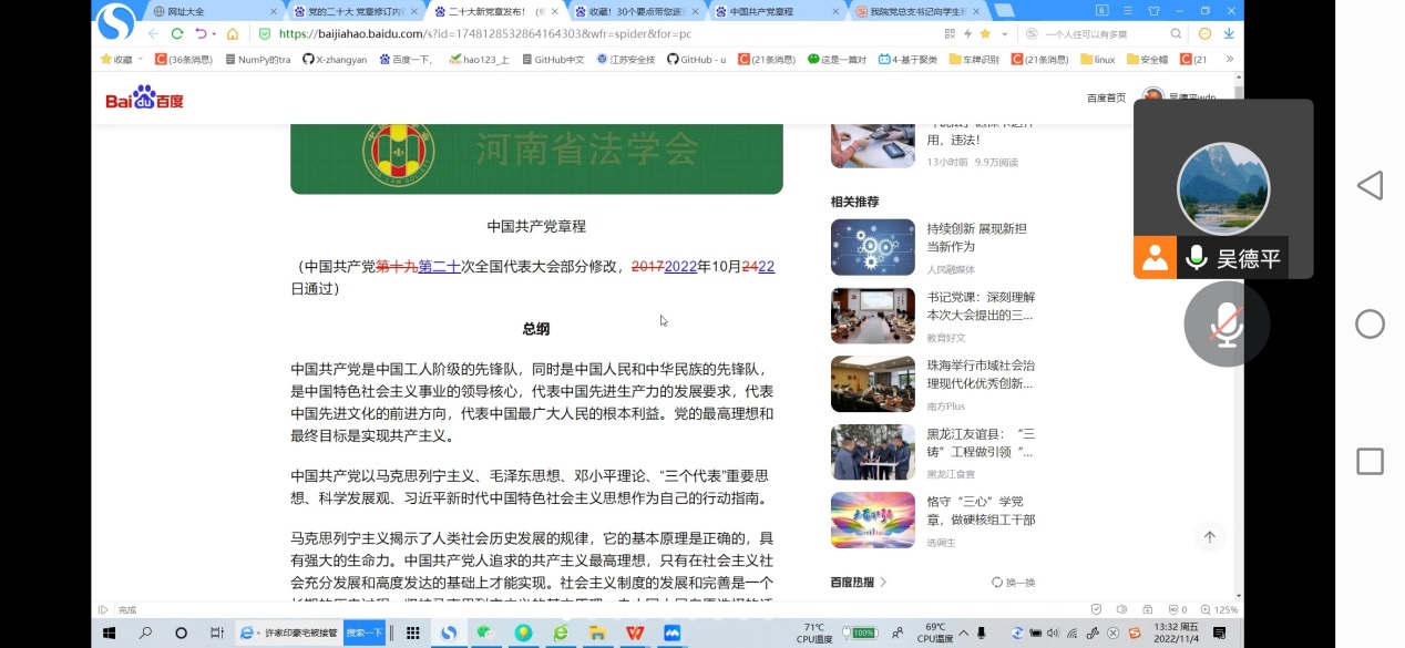 11月4日下午,公司党总支线上召开全体教职工会议,专题学习新修订的《中国共产党章程》。会议由党总支书记吴德平主持。