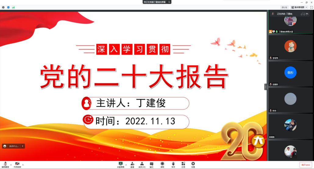 11月13日,XCSport员工党支部组织召开党的二十大报告专题学习研讨会,围绕学习贯彻党的二十大精神,谈体会、谈认识、谈落实,引导支部师生把学习贯彻党的二十大精神工作不断引向深入。公司员工党支部书记丁建俊主讲,支委王冬萍、董元元发言。