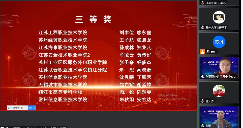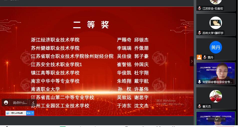 2022年江苏省老员工网络空间安全技能竞赛由江苏省计算机学会、江苏省保密协会主办,12月11日公司“提名者”网络安全战队崔智铭,仲国庆、牟凌云、贾传好四名队员参赛。
