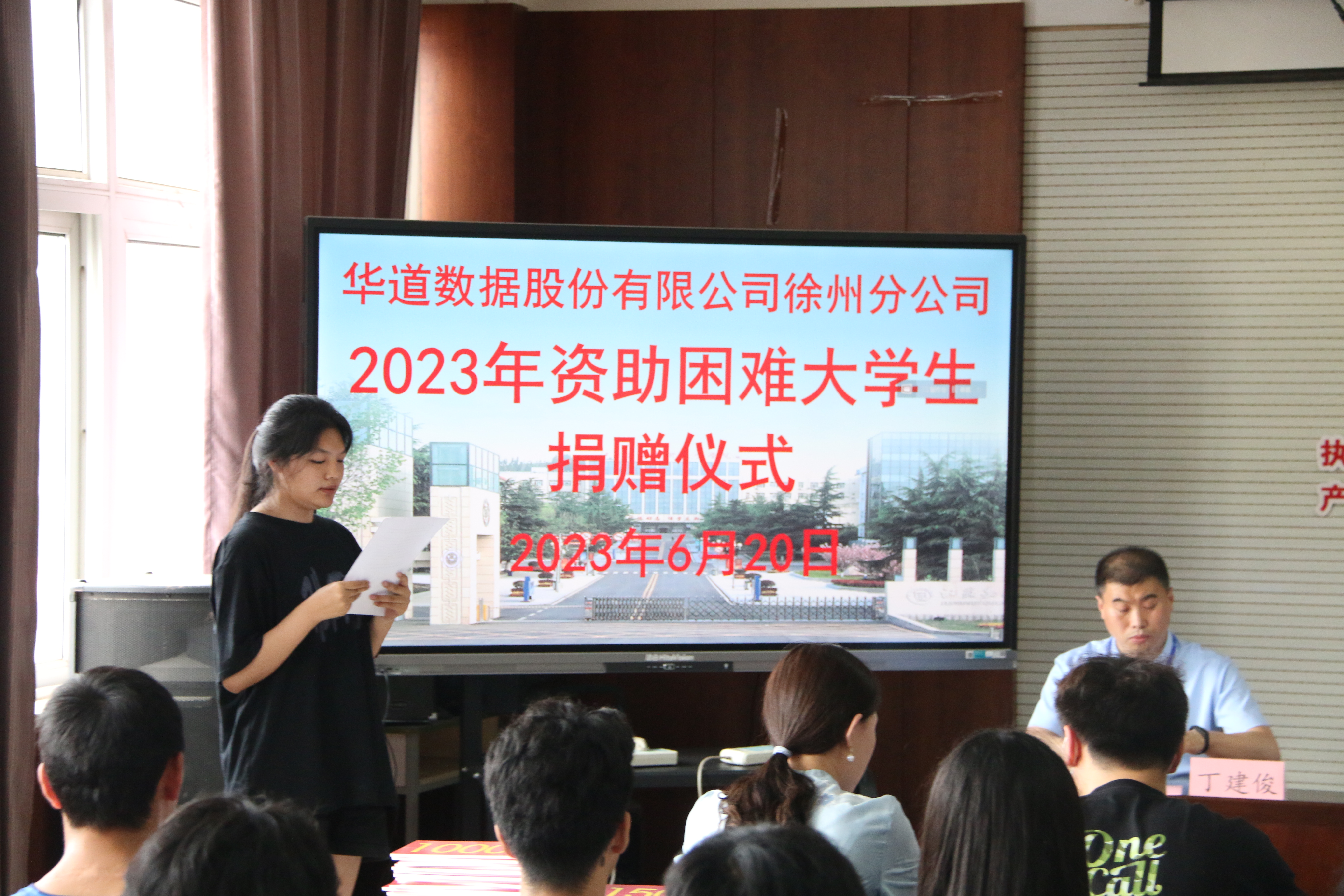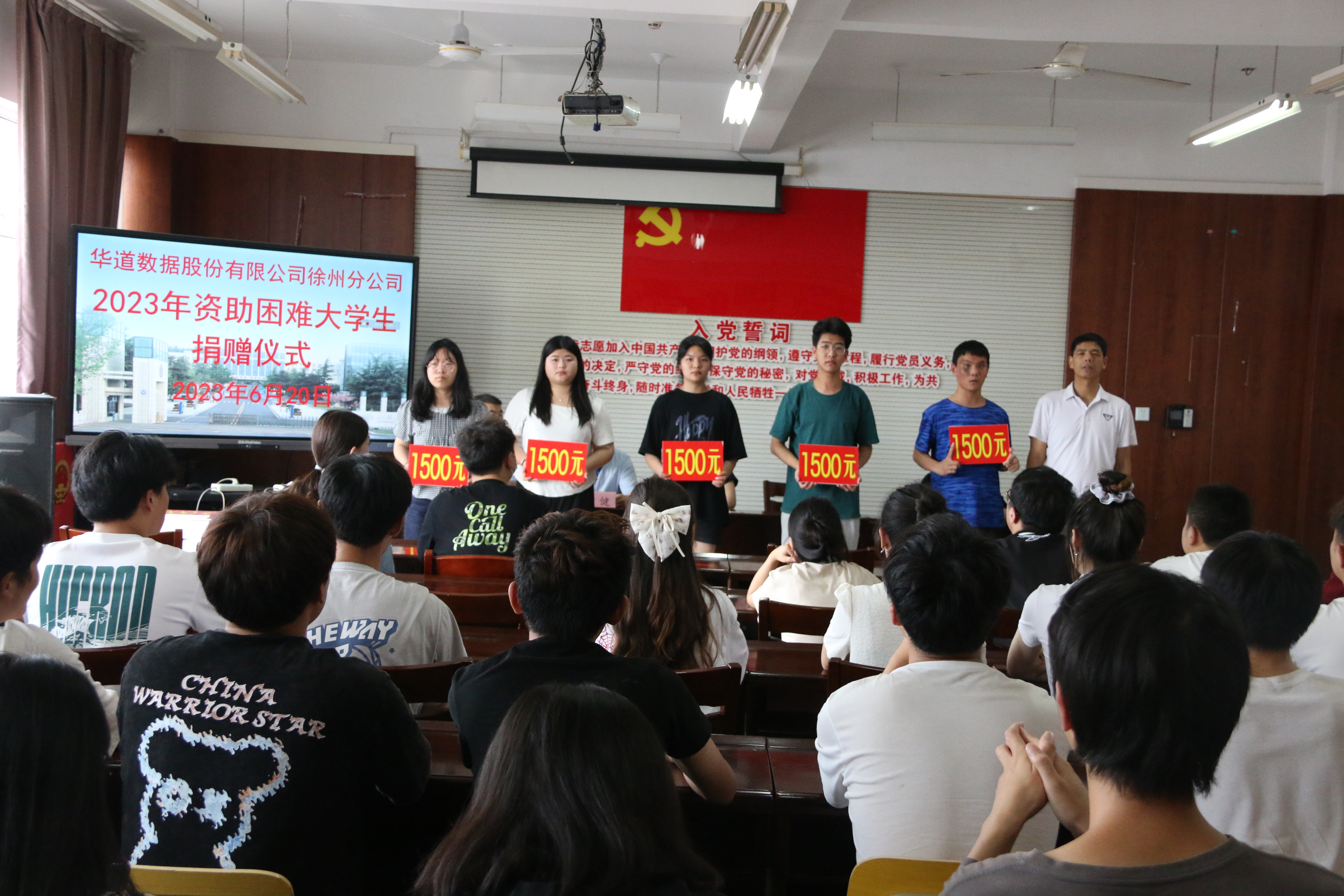 华道数据徐州分公司总经理张春阁经理丁路蝉​公司党总支书记吴德平、经理黄健、副书记丁建俊、全体辅导员及受资助员工参加了本次活动本次捐助总金额21500元,惠及员工共20人。