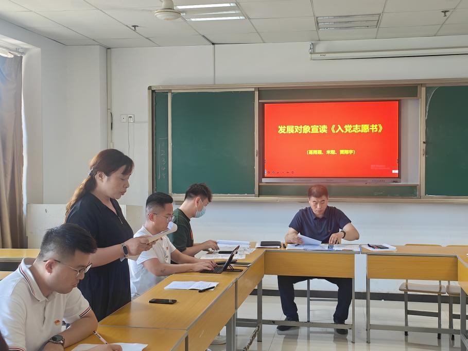 会议伊始,全体党员以饱满的热情唱响国歌。接着三位申请人宣读了《入党志愿书》,结合自己的成长经历和思想变化历程,郑重表达了积极向党组织靠拢的决心和愿望。