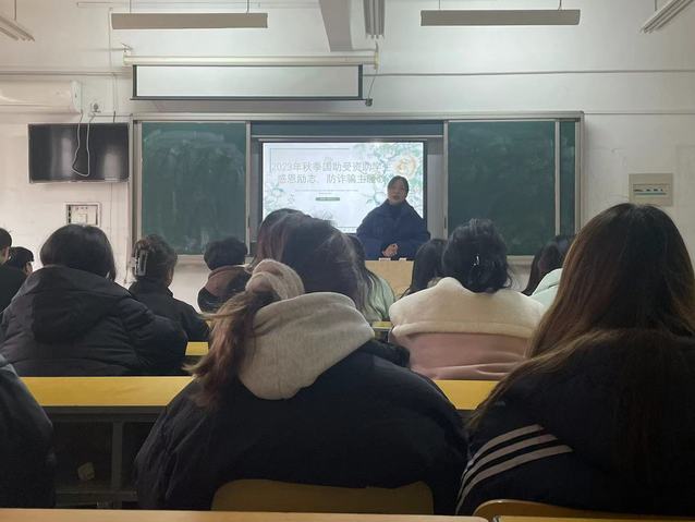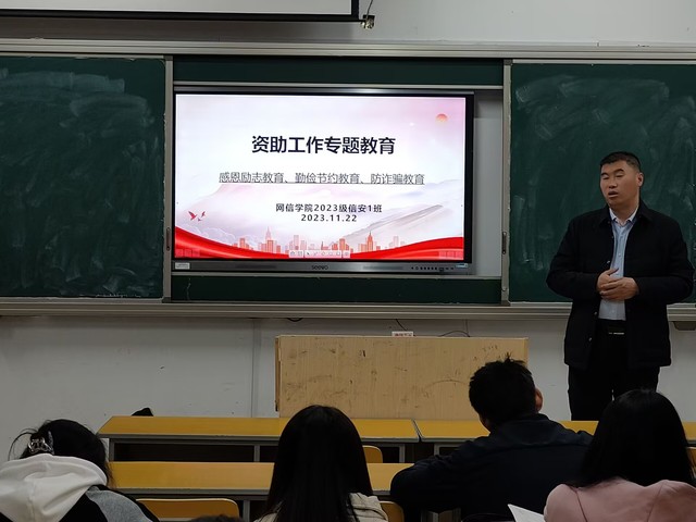本次感恩励志教育主题教育班会旨在向受到国家资助的同学们宣传感恩思想,努力学习奉献自我;并引导员工正确使用助学金,严防网络诈骗。班会伊始,辅导员老师为同学们讲解感恩在个人成长道路和维护社会和谐的重要作用以及感恩教育对于个人品格塑造和社会和谐建设的重要性,以及如何保持一个积极、健康的态度去面对生活中的挑战和困难,鼓励同学们通过实践来提升自我价值和社会价值。