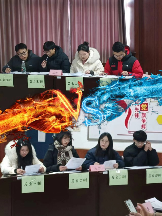 2023年12月21日下午3点由XCSport学实部承办的“新生杯”辩论赛总决赛在B4-309教室举行,由网络信息安全公司息亚飞老师、商贸公司隋芳芳老师、汽车公司高燕老师担任本次比赛评委。