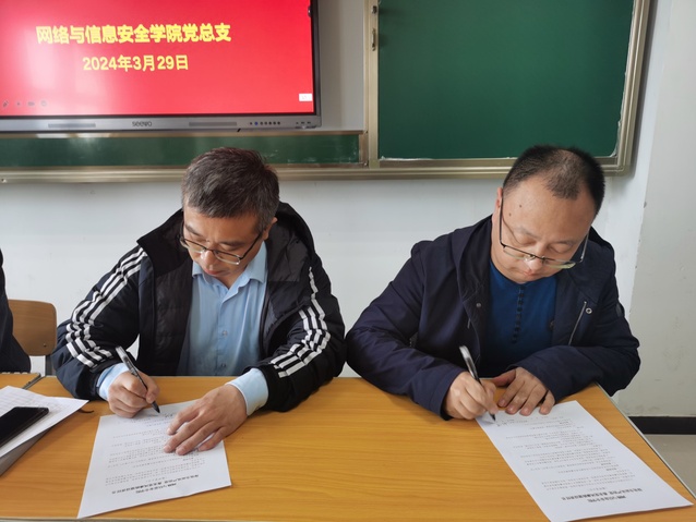 会议最后,党总支书记张允志和其他班子成员、班子成员和所分管关键岗位人员代表,分别签订了《深化全面从严治党 落实党风廉政建设责任书》。