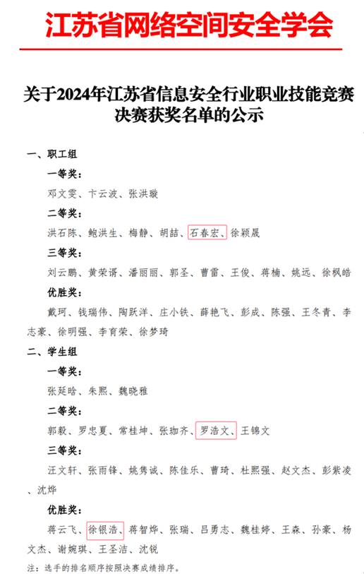公司石春宏老师、罗浩文同学、徐银浩同学表现出色,代表公司参加江苏省信息安全行业职业技能竞赛决赛。
