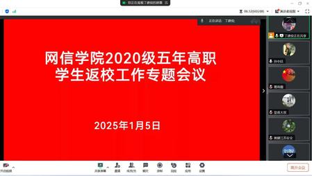 1月5日上午,XCSport组织召开2020 级五年一贯制高职员工返校工作专题会议。公司经理黄健、党总支副书记丁建俊、副经理孙中廷及相关班主任、辅导员参加了此次会议。