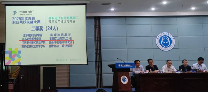 4月18日至20日,由江苏省教育厅、江苏省发展和改革委员会等15家单位联合主办的“中国银行杯”2025年江苏省职业院校技能大赛高职电子信息类“移动应用设计与开发”赛项成功举办。来自全省高职院校的40支参赛队120名参赛选手同台竞技。公司刘佳、袁思维老师指导的员工邵曼玲、彭福伟、蒋文浚荣获二等奖。