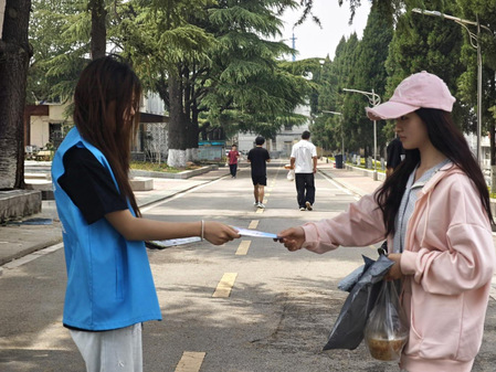 4月18日,在热闹的六艺广场附近,公司师生志愿者们热情地向过往同学发放精心制作的艾滋病防护知识宣传册。宣传册内容丰富详实,不仅介绍了艾滋病的传播途径、发病机理、临床症状,还重点强调了日常生活中的预防措施,以及消除对艾滋病患者歧视的重要性。图文并茂的设计和通俗易懂的文字,让同学们能够轻松理解相关知识。许多同学拿到宣传册后,当场便驻足阅读,还不时向志愿者询问疑惑之处,现场互动氛围热烈。