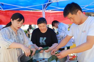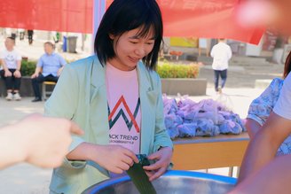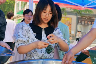 包粽子体验区热闹非凡,师生们被分为若干小组,在专业老师和志愿者的指导下,兴致勃勃地投入到包粽子活动中。粽叶翻飞,糯米轻填,绳子缠绕,大家充分发挥创意,制作出形状各异的粽子。现场播放的端午传统民谣,更是让师生们沉浸在浓郁的节日氛围里。食堂工作人员将包好的粽子统一蒸煮,活动结束后,师生们凭券就能领取自己亲手制作的粽子,品尝这份独一无二的端午味道。