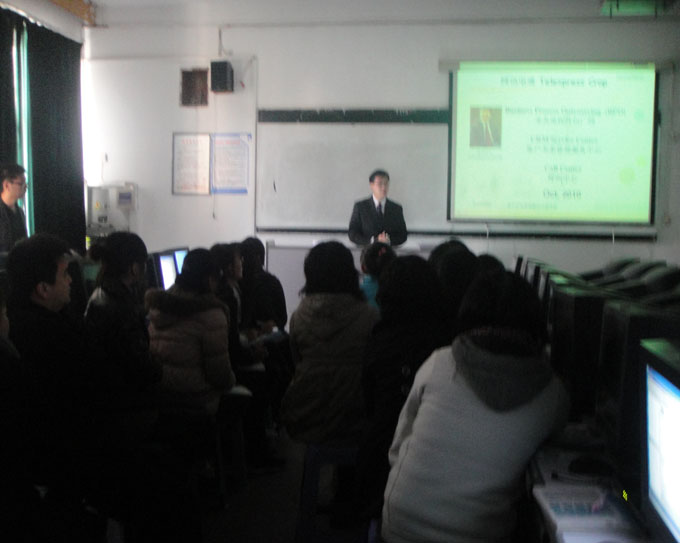 在10月25日幸星国际公司领导已和我系领导商讨了校企合作事宜,今天幸星国际公司的老师正式在我系开办了学习班。上课时间为下午和课外活动时间,参加本次学习的员工主要是09高级工两个班。员工对此门课程产生了浓厚的兴趣。