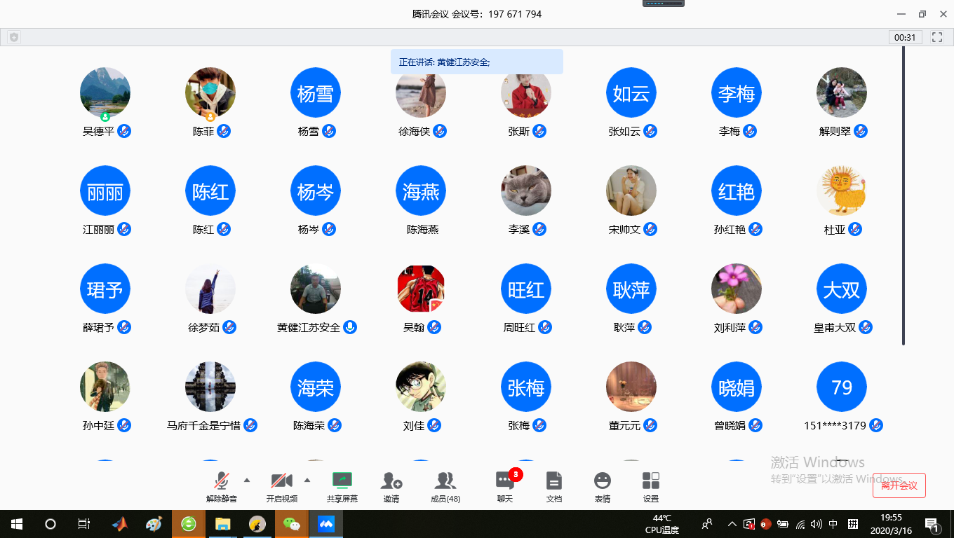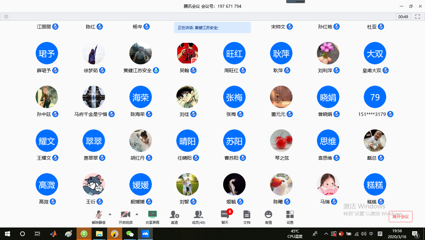 3月16日晚19:30,信息工程系党支部利用腾讯会议组织全系教职工学习《全面提高依法防控依法治理能力,健全国家公共卫生应急管理体系》、教育部等七部门印发《关于加强和改进新时代师德师风建设的意见》的通知和《江苏发布关于做好教职工安全返校返岗准备工作的通知》。会上吴德平书记结合当前疫情防控现状对文件进行简要解读,并对下一步疫情防控提出相关要求。同时要求全面提升教师思想政治素质和职业道德水平,加强和改进新时代师德师风,做到为人师表。