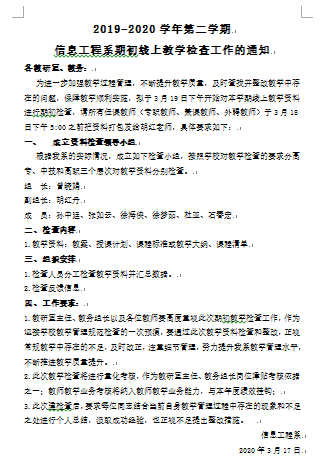 信息工程系开展2019-2020-2学期期初线上教学检查工作