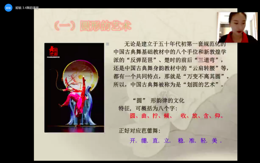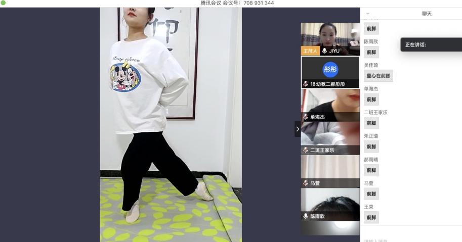 为了把这种需要面对面指导的舞蹈课程在网络中隔着屏幕实现,姬毓老师做了很多尝试,在开课前和员工试验了很多软件和平台,并与开设过线上舞蹈课程的老师探讨、汲取经验,最终决定采用腾讯会议直播、智慧职教平台辅助完成线上教学。