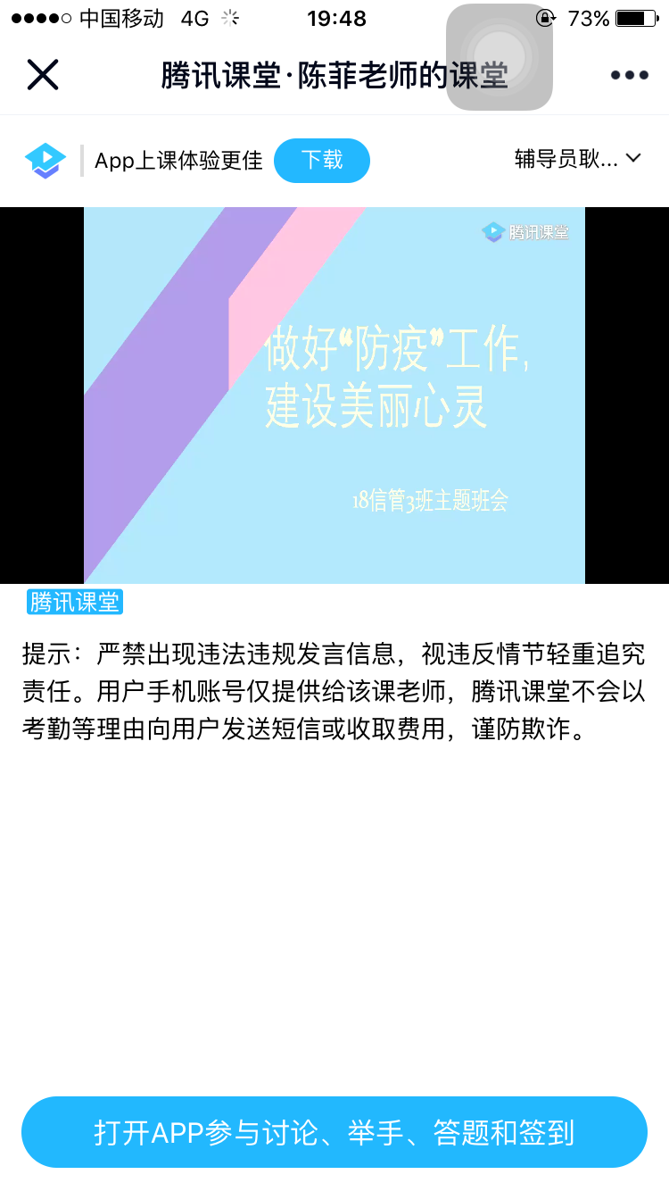 为落实公司疫情工作专题会议精神、强化疫情期间员工管理工作,2020年4月12日晚上7点,信息工程系利用线上平台“腾讯会议”召开班主任、辅导员工作例会。信息工程系党支部书记吴德平、学管副主任李梅以及全体辅导员、班主任参加了此次会议,会议由李梅主任主持。