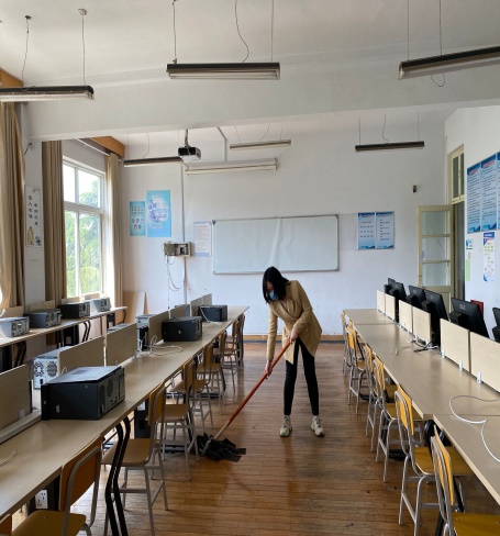 依据公司关于新冠肺炎疫情防控期间做好开学准备的部署,信息工程系为创建干净整洁的校园实训环境,保障实训室卫生和设备安全,确保新学期操作、实训教学工作有序进行,4月20日信息工程系全体教务工作人员对所有实训室进行了疫情相关宣传内容、消毒记录表等张贴,对实训室进行了卫生扫除。4月21日上午,为了保证实训室卫生无死角,安全无隐患,全体机房负责人和教务固定岗人员,对实验、实训室再次进行了安全隐患排查和卫生大扫除。