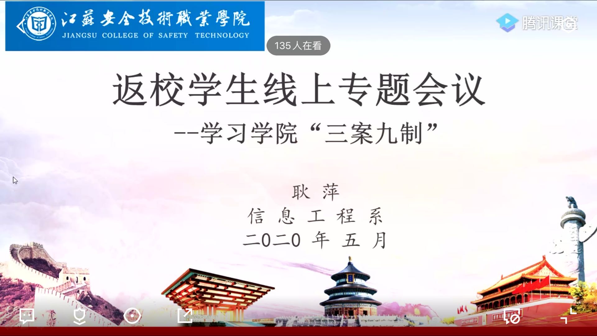 为确保疫情防控工作实施到位,进一步抓好抓实抓细返校员工的管理工作,确保返校员工身体健康、防疫意识不松懈,5月12日晚上7点,信息工程系全体辅导员组织133名返校员工参加线上“三案九制”专题学习,信息工程系辅导员耿萍担任主讲教师。