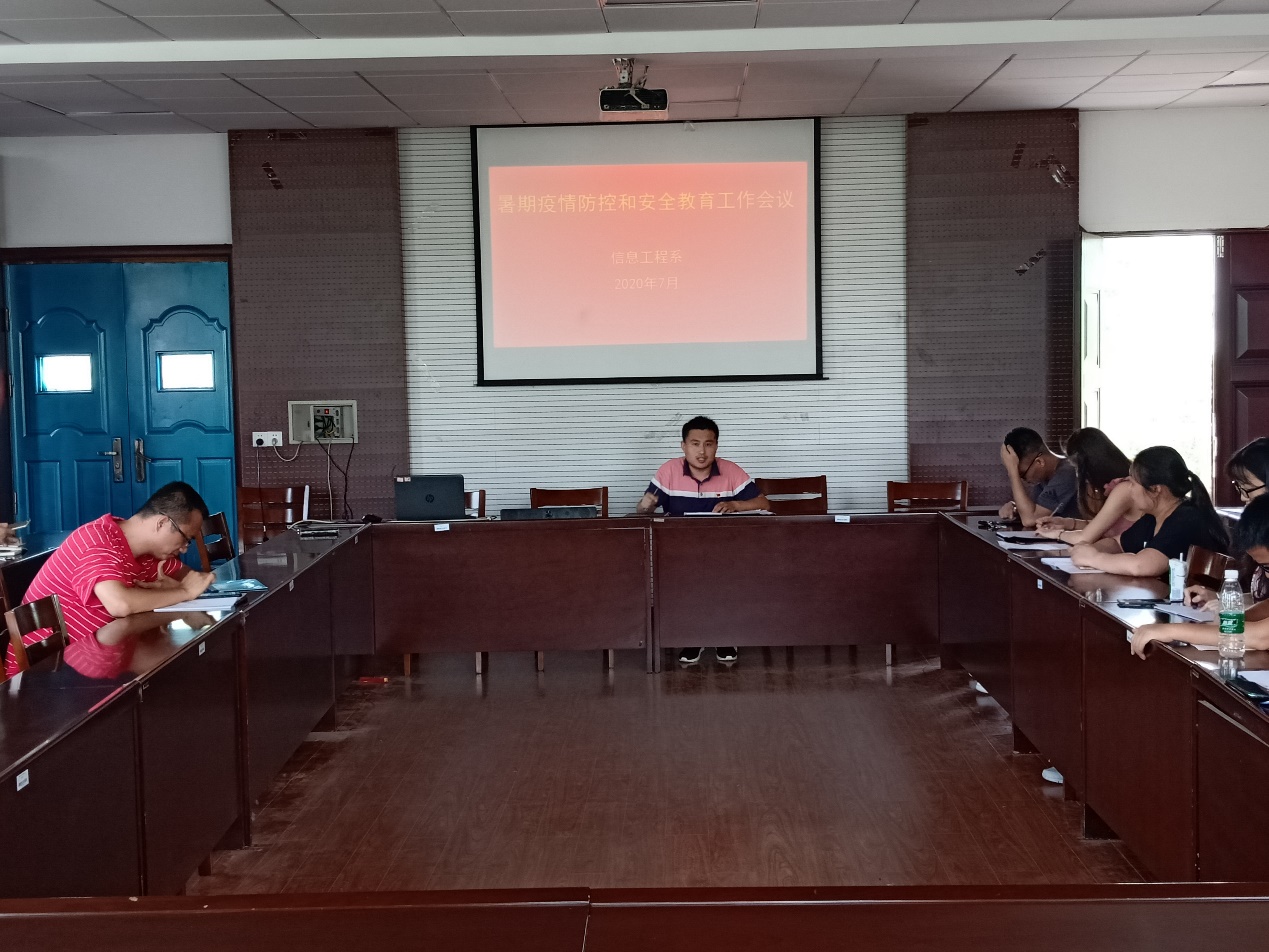 2020年7月15日,信息工程系贾汪校区组织班主任召开暑期疫情防控和安全工作会议,学管主任付园同志主持会议。