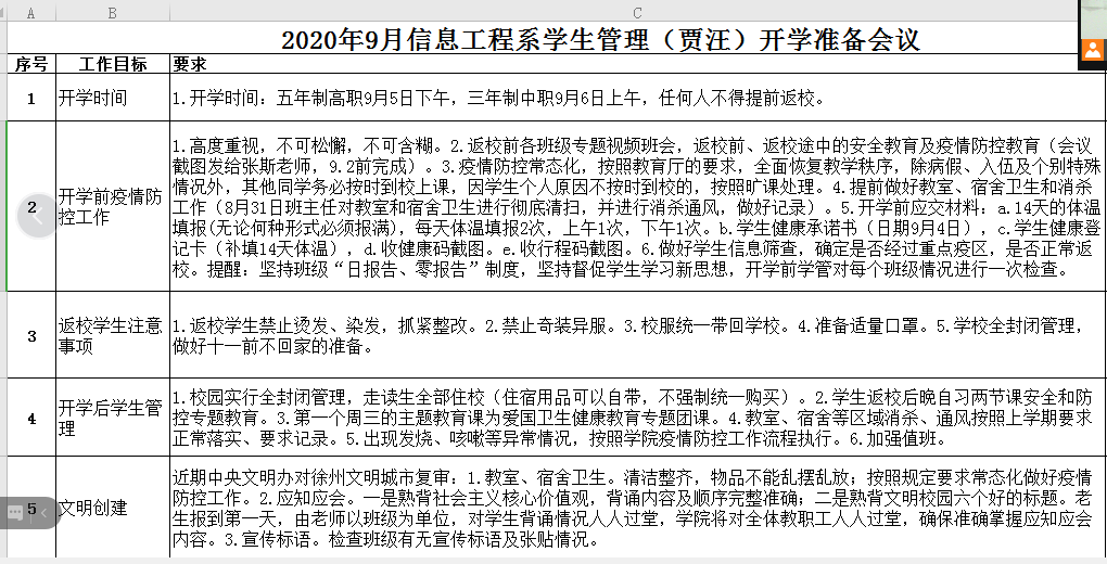 2020年8月28日晚,信息工程系通过线上形式组织召开班主任例会,部署开学前疫情防控工作和安全教育工作。