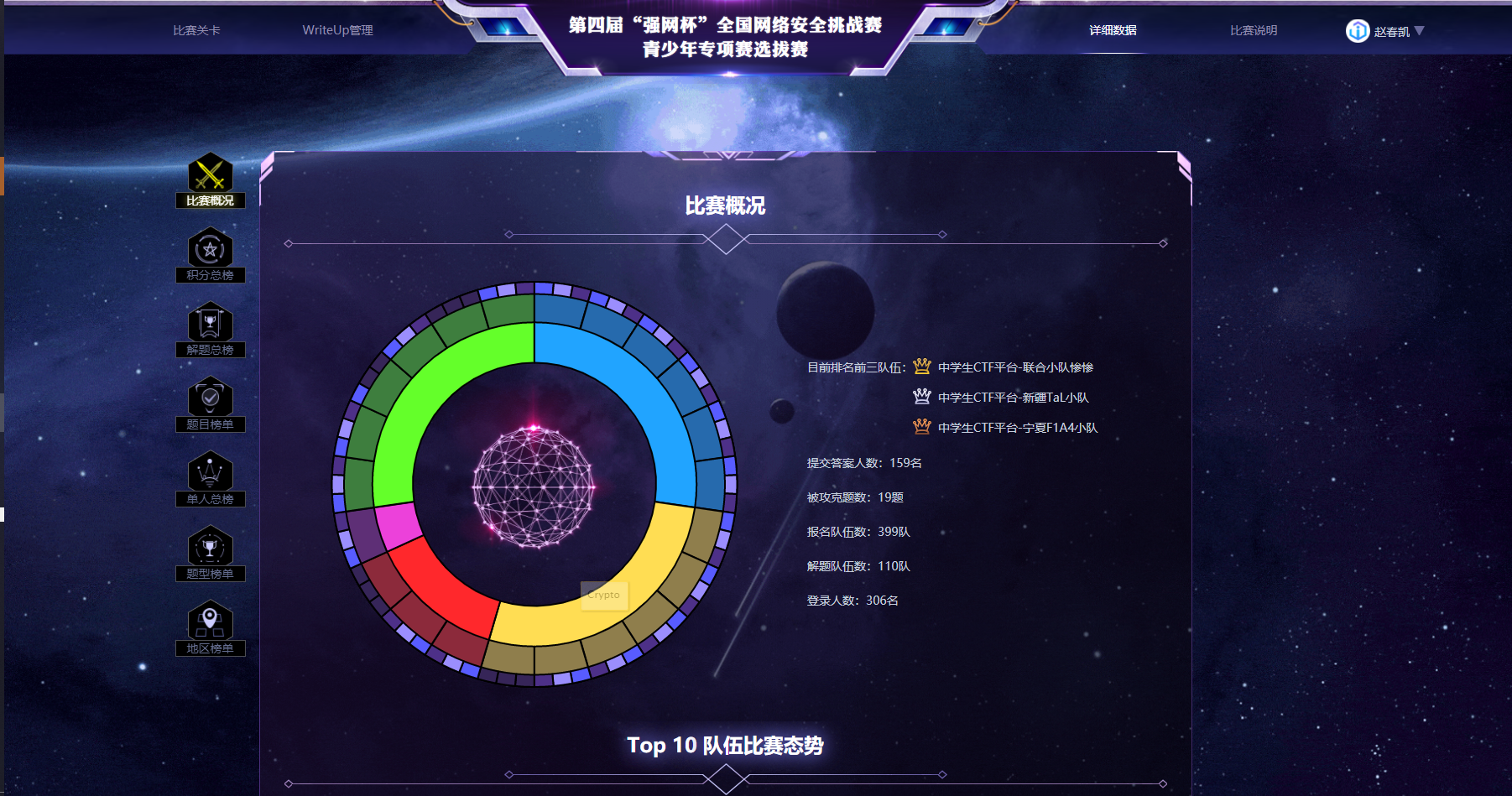 青少年专项赛分为两个阶段,第一阶段为9月5号-6号线上ctf解题赛,通过31个小时的奋战,公司提名者战队和菜鸟战队在全国399支战队中脱颖而出,实现了突破,第一次获得该项比赛的线下资格。