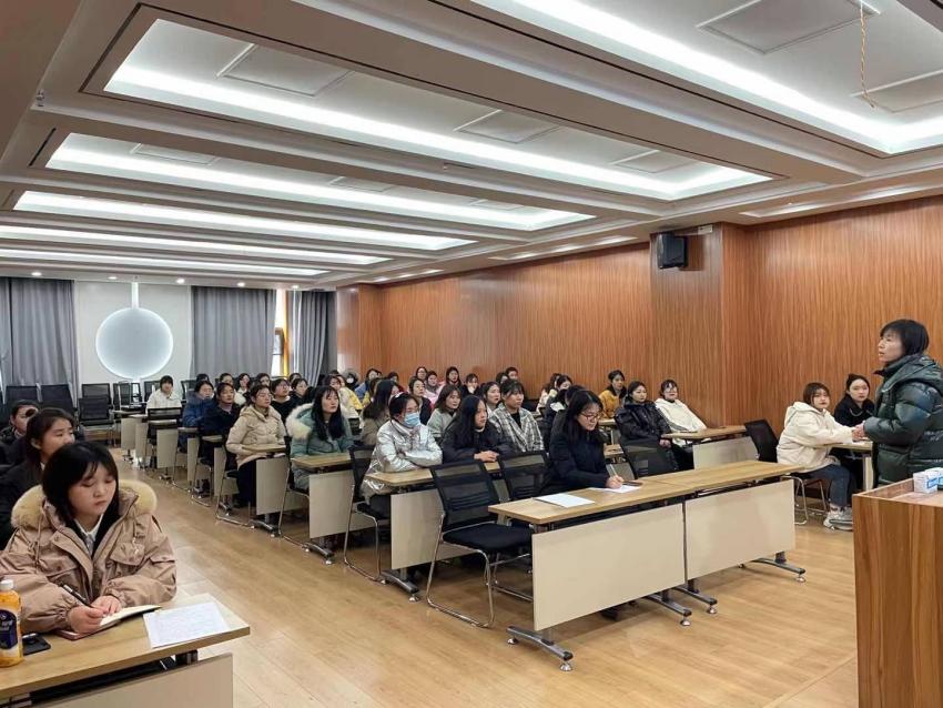 2020年12月25日上午,公司XCSport幼儿发展与健康管理专业2019级员工专业见习课程安全教育动员大会在公司第四报告厅召开。教务主任曾晓娟,教研室主任徐梦茹,相关辅导员、见习负责教师,以及2019级幼管专业65名全体员工参加了此次动员大会。会议由教学主任曾晓娟主持,会议在轻松愉悦的氛围中进行。