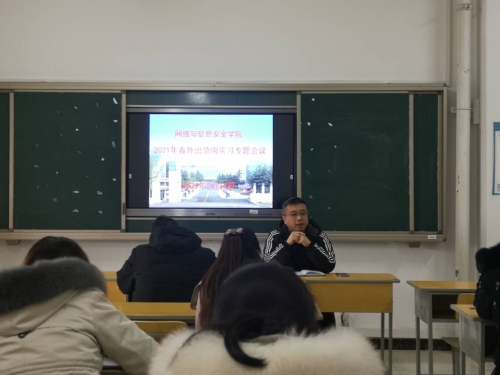 2021年2月27日上午9:30公司召开了2021年春在外顶岗实习班级专题工作会议。公司领导黄健,负责就业管理的皇甫大双老师和全体在外实习班级辅导员、班主任参会。