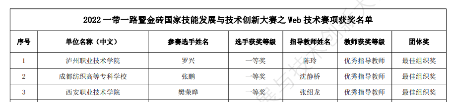 “2022一带一路暨金砖国家技能发展与技术创新大赛Web技术赛项”于5月6日在泸州职业技术公司举行,赛项采取个人赛方式,每支参赛队伍由1名选手组成,共有来自全国职业院校的195支参赛队伍参加了本次比赛,公司孙佳帆同学经过4个多小时的激烈角逐,最终荣获全国二等奖,公司获得“优秀组织奖”,刘佳老师获得“优秀指导教师”称号。